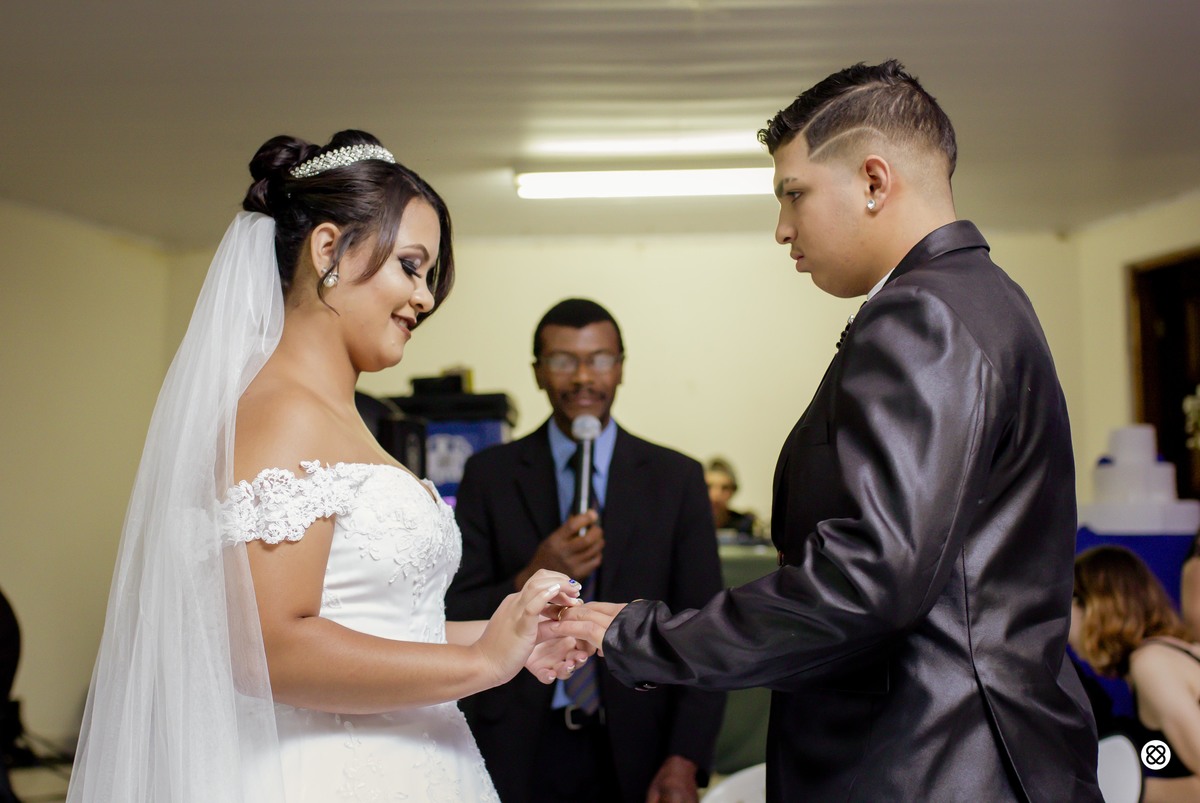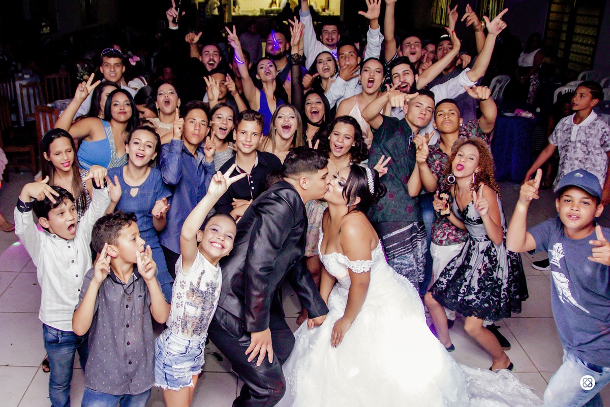União linda entre dois jovens corações. Festa linda, cerimônia emocionante e festa animadíssima!